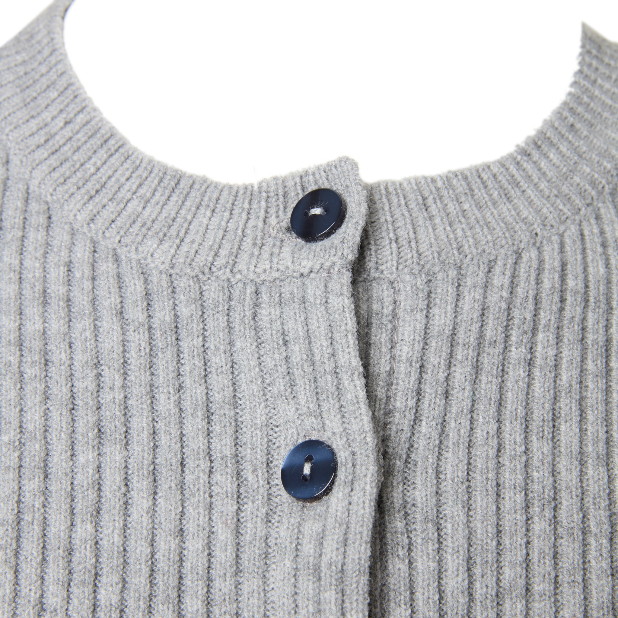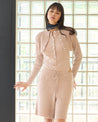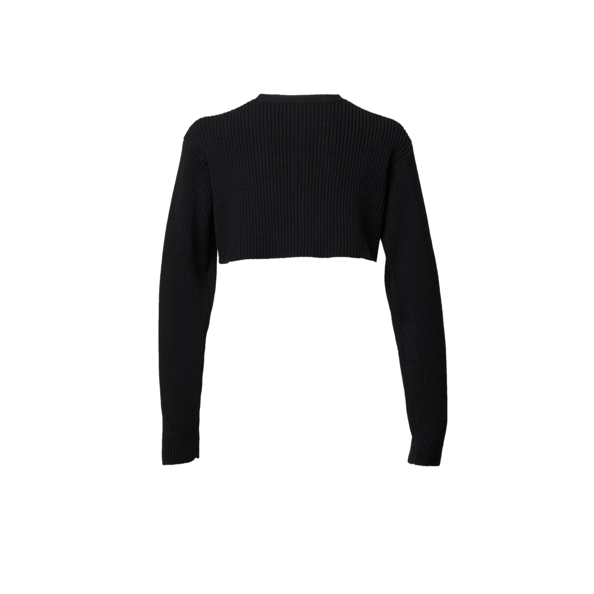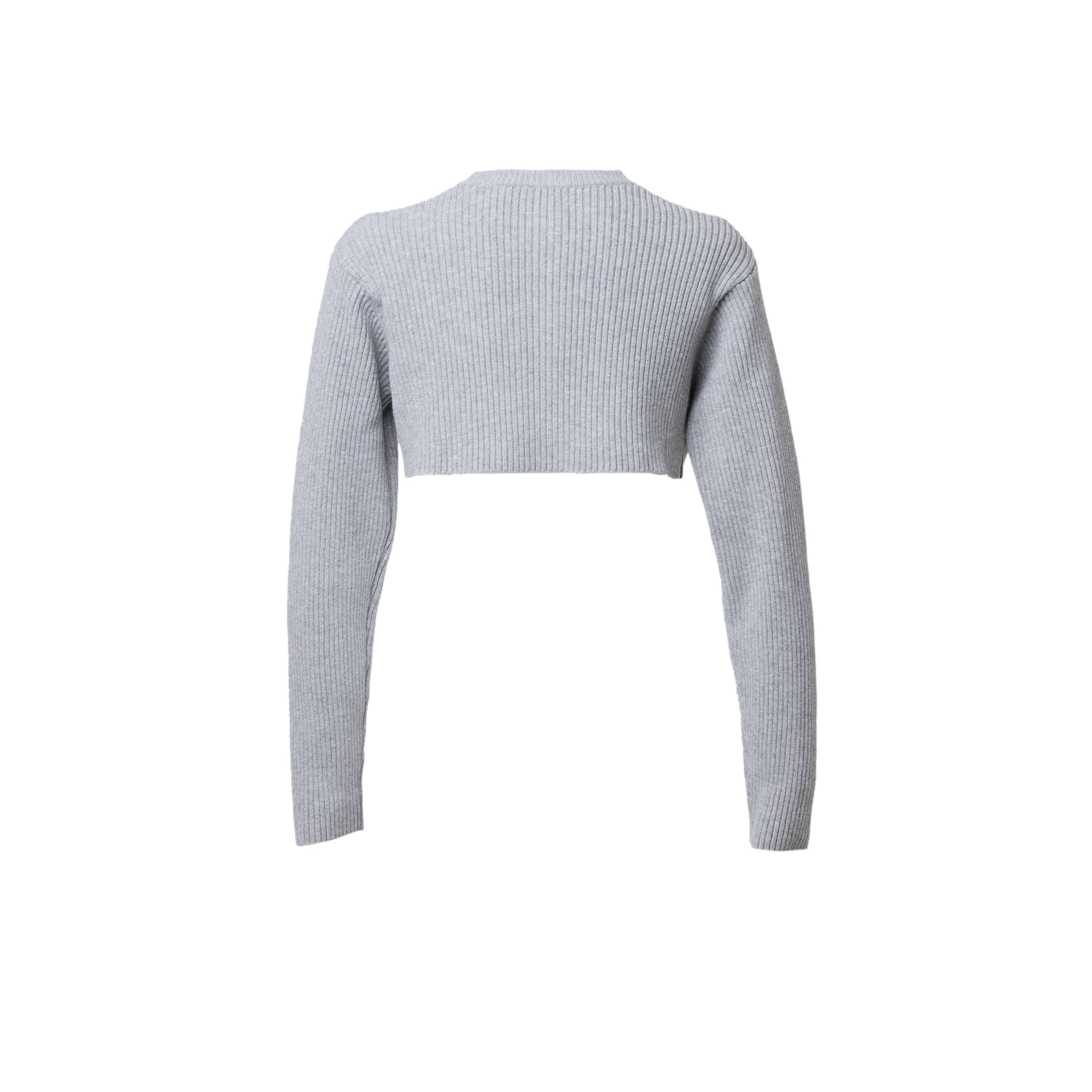 ソフトタッチの糸を使用し程よい膨らみ感があるリブ編みのクロップ丈のカーディガン。